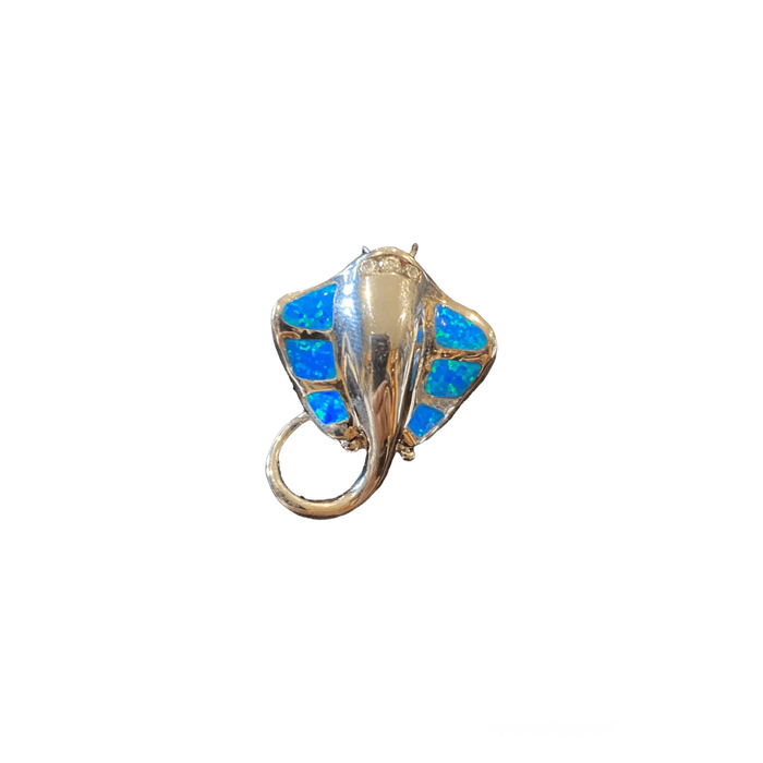 Blue Opal and Sterling Silver with CZ Stingray Pendant