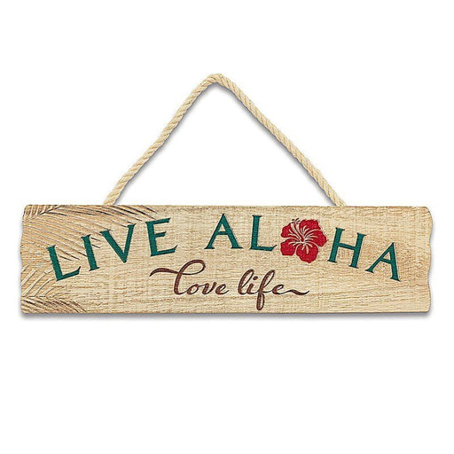 "Live with Aloha - Surf Board" Wooden Hanging Sign