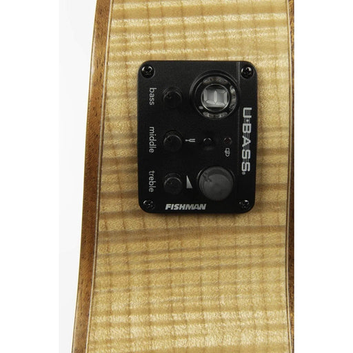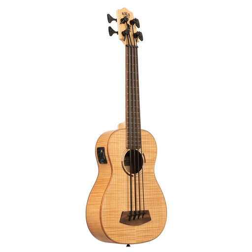 The Flame Maple Fretted U•BASS® has a wood grain with curled figuring from which it takes its name. This U•BASS also has a Mid-Century Modern asymm...