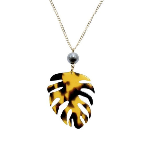 Monstera Leaf Faux Turtle Shell Necklace with Pearl