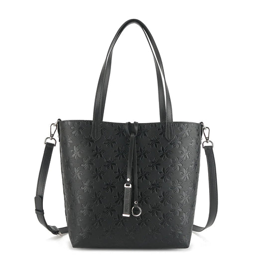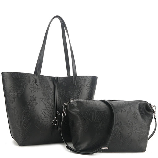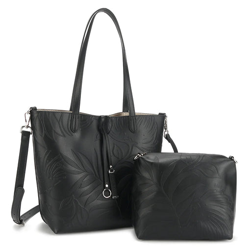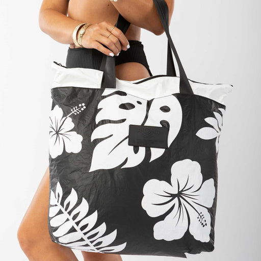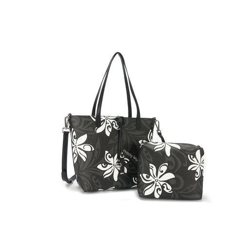 Happy Wahine Reversible Large Nancy Tote, Tiare Embossed Black