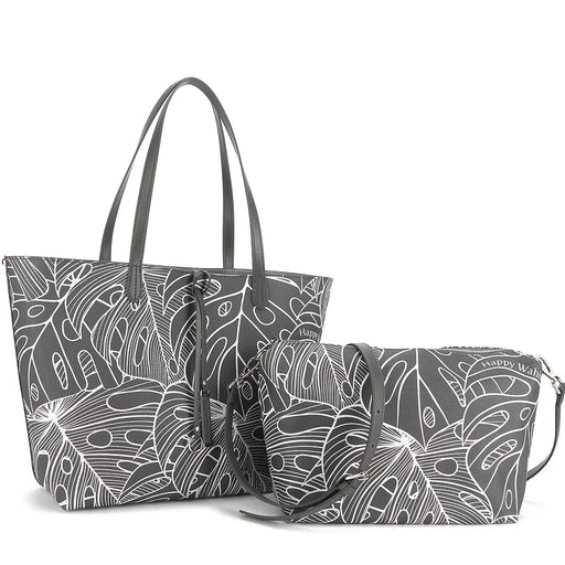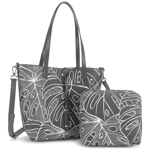 Happy Wahine Reversible Large Nancy Tote, Monstera Lines Grey
