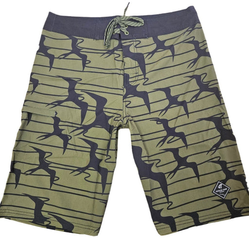 "Black Iwa Bird" Board Short Men's 4 Way Stretch - Wailoa