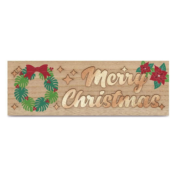 Light up your home or office with a warm greeting of Merry Christmas. Each light box is constructed of pressed wood and comes affixed with hanging hook, ready to decorate any wall or flat surface. Light boxes require two AA batteries, not included with purchase.