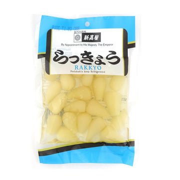 Rakkyo is a type of Japanese pickle that is eaten as a side dish, appetizer, or relish. It is a popular accompaniment for Japanese curry, ramen, or white rice. Rakkyo is made using the bulbs of scallion and has a fragrant flavor that is sweet, salty, sour, and savory with a light crunch. Eat it as-is or use it to add texture and flavor to stir-fry dishes.