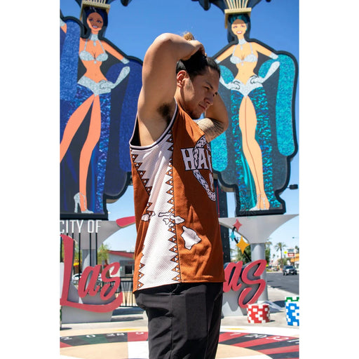 Hawaiian Script Basketball Jersey Color - Brown Style - Basketball Jersey Fabric - 100% Knitted Polyester Fit - Standard Fit Model: 5'10 205lb We...