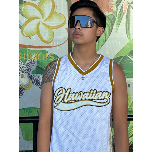HIC Hawaiian Style Basketball Jersey Traditional Jersey Hawaii• 100% Polyester bird's eye mesh• Front and Back tackle twill applique • Side Panel S...