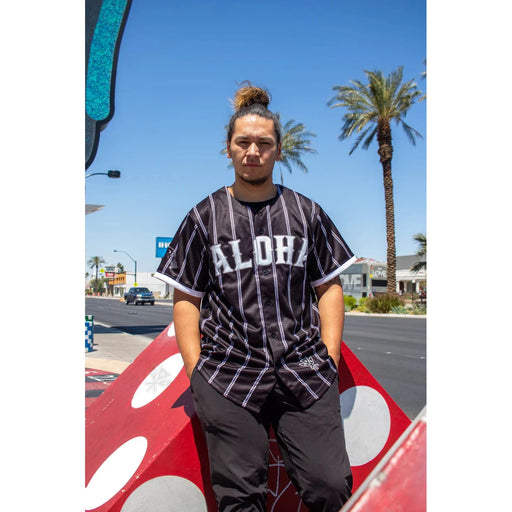 Kua "Aloha" Black Pinstripe Baseball Jersey