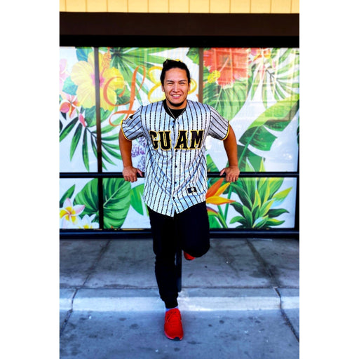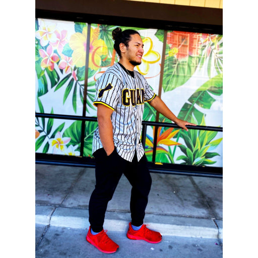 The Kua Brand Make a statement with your look by wearing the Kua Guam Pinstripe Baseball Jersey. Guam embossed on the front. Guam Island printed o...