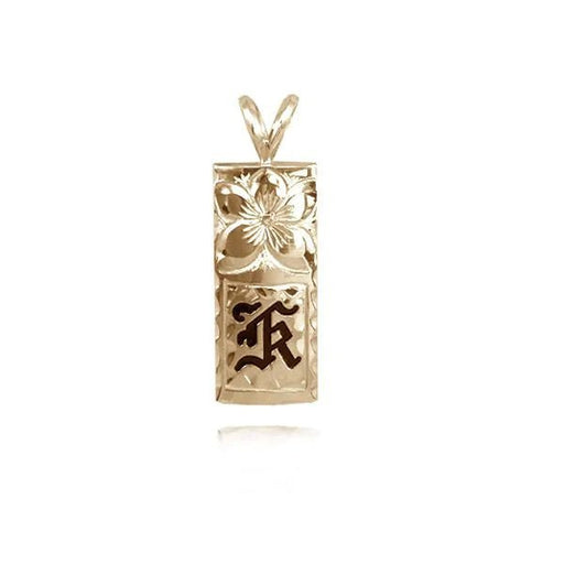 14K Yellow Gold Single Initial Hawaiian Pendant with Hand Carved Plumeria
