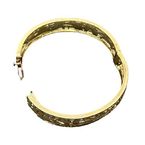 14KT Gold Hawaiian 10mm Cut-in Plumeria Scrolled Bangle with Box Clasp and Hinge