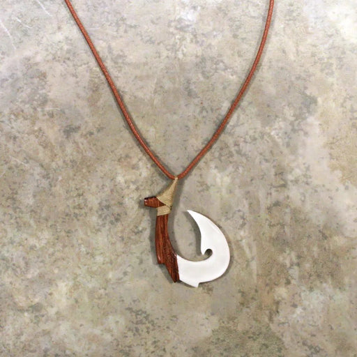 24" Long Wood with Bone Fish Hook Pendant Adjustable Necklace Handcrafted Island-Inspired Jewelry Natural Wood and Bone Fish Hook Pendant Explor...