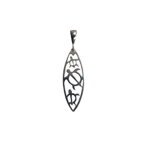 Sterling Silver Triple Honu Surfboard Pendant Roughly 30mm long