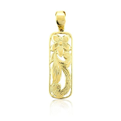 14K Yellow Gold Custom Hawaiian Vertical Pendant with Plumeria