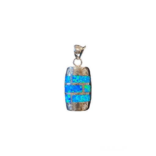 Blue Opal and Sterling Silver with CZ Beer Barrel Pendant