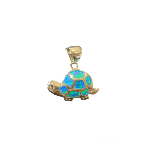 Blue Opal and Sterling Silver with CZ Honu Pendant