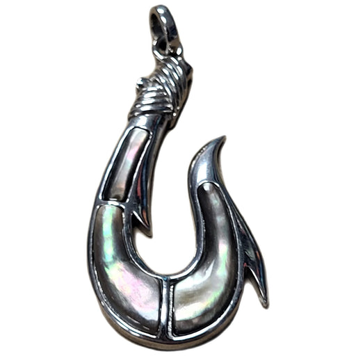 Sterling Silver Hawaiian Fish Hook with Two Sided Engraved Maile Leaf Pendant, Large