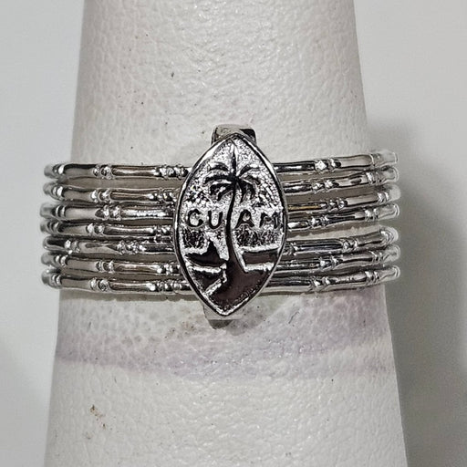7 Day Ring with Guam Seal Rhodium 7 Connected rings