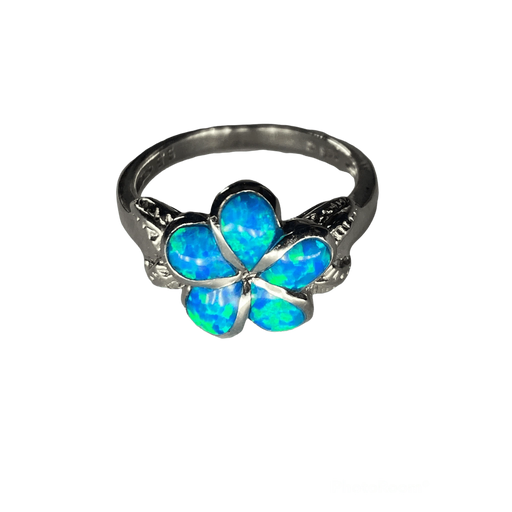 Blue Opal and Sterling Silver Fancy Plumeria Ring, Size 6.5