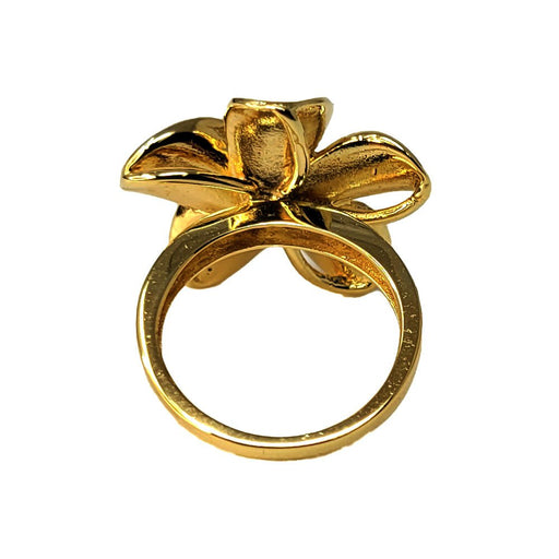Gold and Rhodium Plated Large 22mm Plumeria Ring with Clear CZ