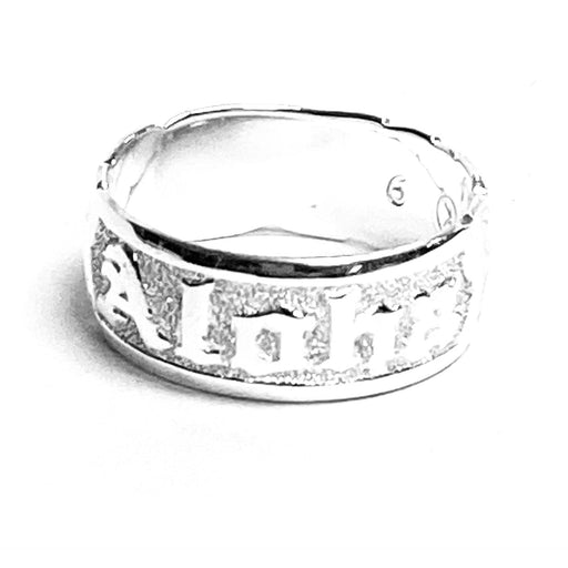 The 8mm ring is made with sterling silver and high polished to avoid tarnishing. There is a Raised Letter Name 'Aloha' engraved on the center of th...