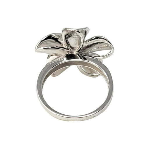 Sterling Silver and Rhodium Plated Large 22mm Plumeria Ring with Clear CZ