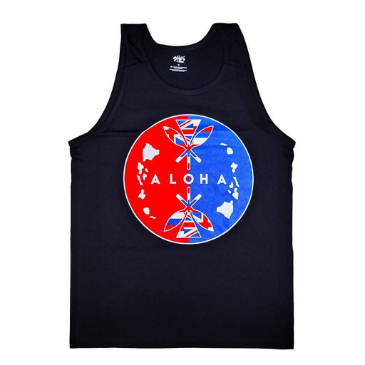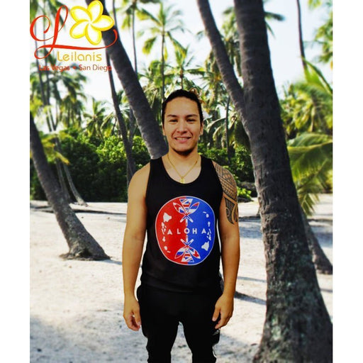 Men's Tank Top Black with Aloha Hawaiian Flag and Island design.  Perfect for the warmer months.