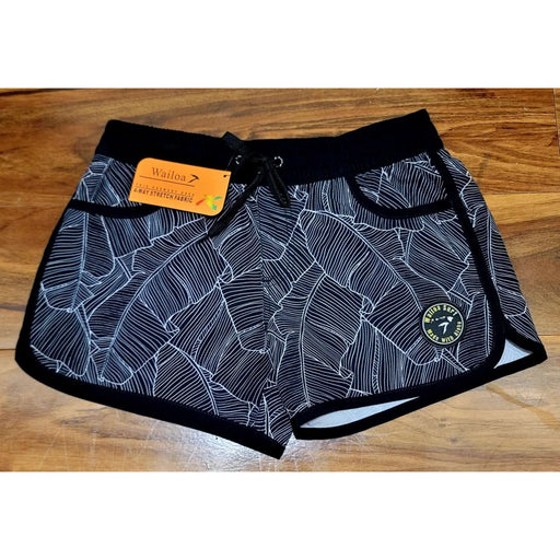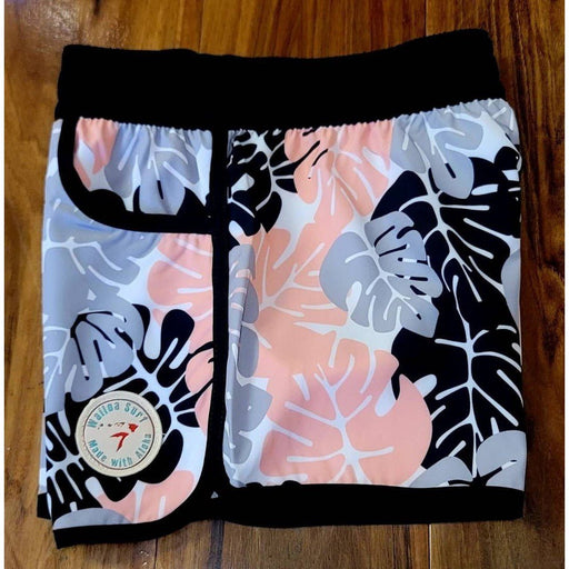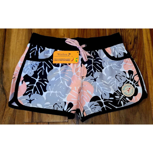 Wailoa “Black/Grey/Pink Leaf” Lady Stretch Volley Shorts
