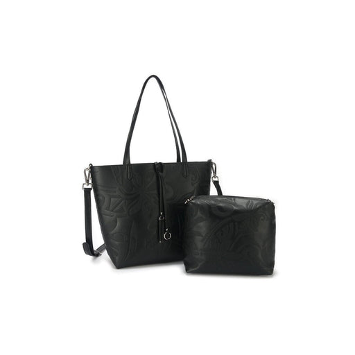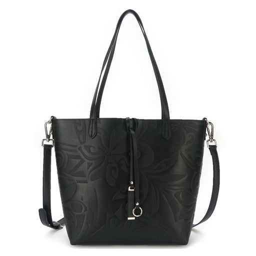 Happy Wahine Reversible Large Nancy Tote, Tiare Embossed Black
