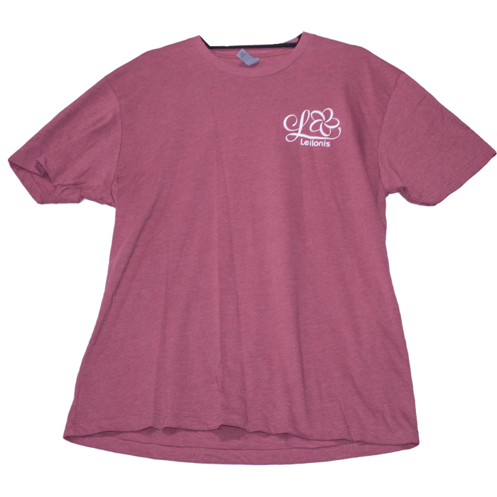 On the front is the Leilani's Attic Logo and on the back is a depiction of a beautiful hawaiian women practicing hula with an inscription underneath that reads, "Hula is the language of the heart.  Therefore it is the language of the Hawaiian People".