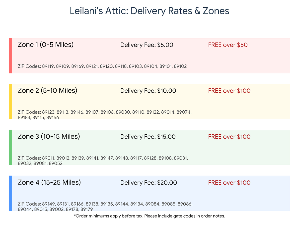 We currently deliver within a 25-mile radius of our Maryland Pkwy location. If your ZIP code isn't listed in our zones, the local delivery option will not appear at checkout. You can still choose "Shipping" via USPS, UPS, or Fedex.