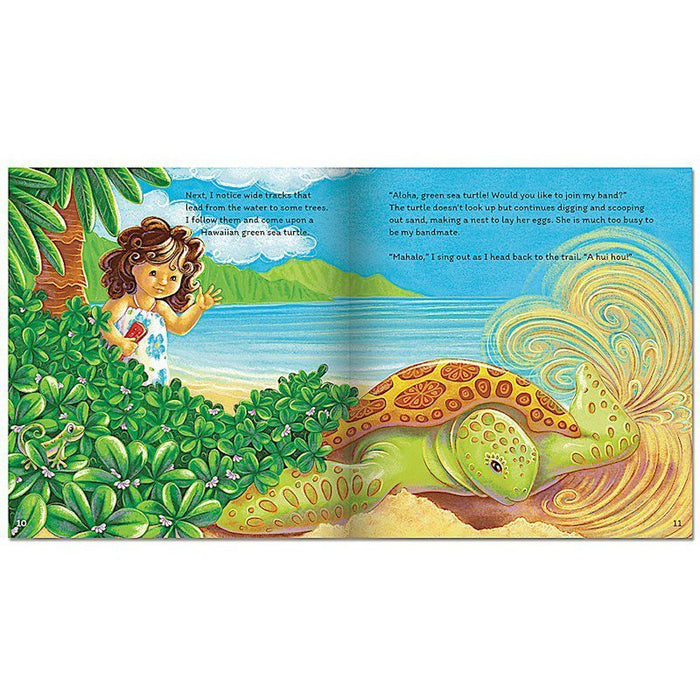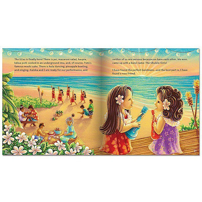 Alora loves to play her ʻukulele. As she gets invited to play her tunes for the neighborhood lūʻau, she can’t help but think of how nervous she will be playing all by herself. On her way to invite her Tūtū to the event, she tries to find a bandmate. Among those are dolphins, monk seals, green sea turtles, bats and nene geese, all of who are not fit to perform with her. Later that evening, she meets Kaloka! Her perfect bandmate and new friend. They tune away into a perfect night, leading into a successful lūʻau.