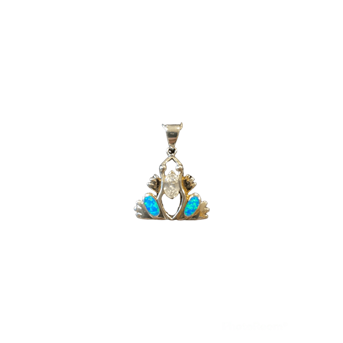 Blue Opal and Sterling Silver Frog with CZ Pendant