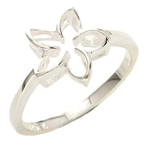 This dainty Sterling Silver ring features a floating plumeria that has a 12mm diameter.