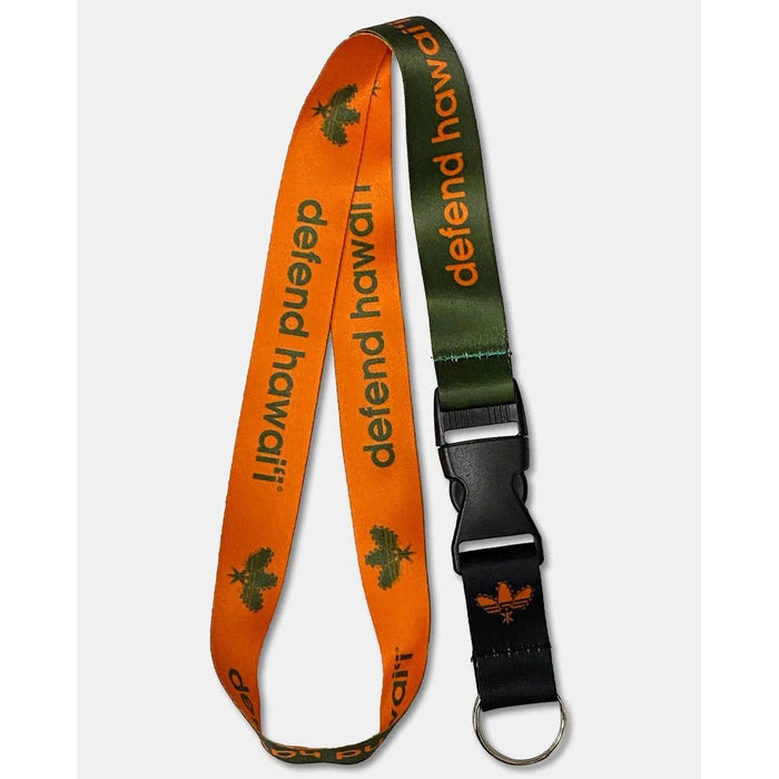 Lanyard with detachable clip and two-sided orange and olive design. One of our most popular products and an easy gift for anyone.