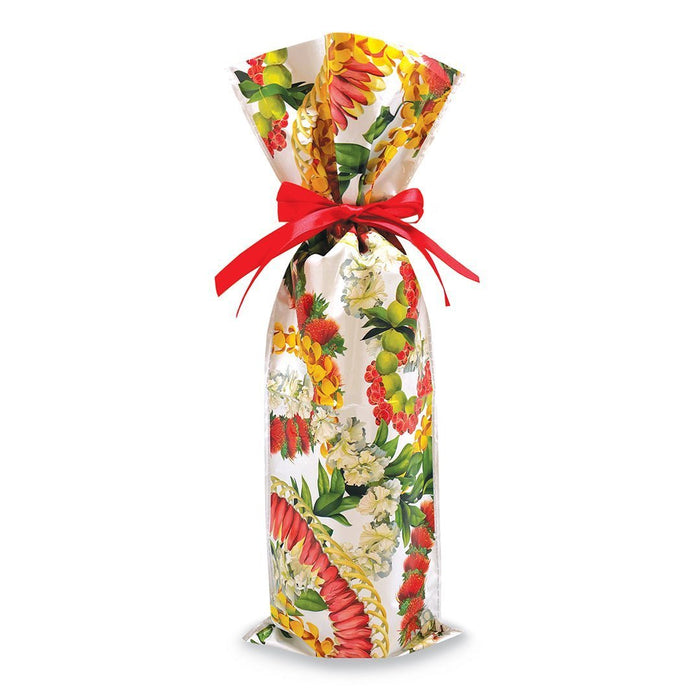 Treat your loved ones to a touch of the tropics with our Foil Drawstring Wine Gift Bags in the Leis of Beauty design. These reusable bags require no extra wrapping and come in a pack of 3 with gift tags and ties included. Simply tie the ribbon drawstrings for a beautiful and hassle-free presentation.
