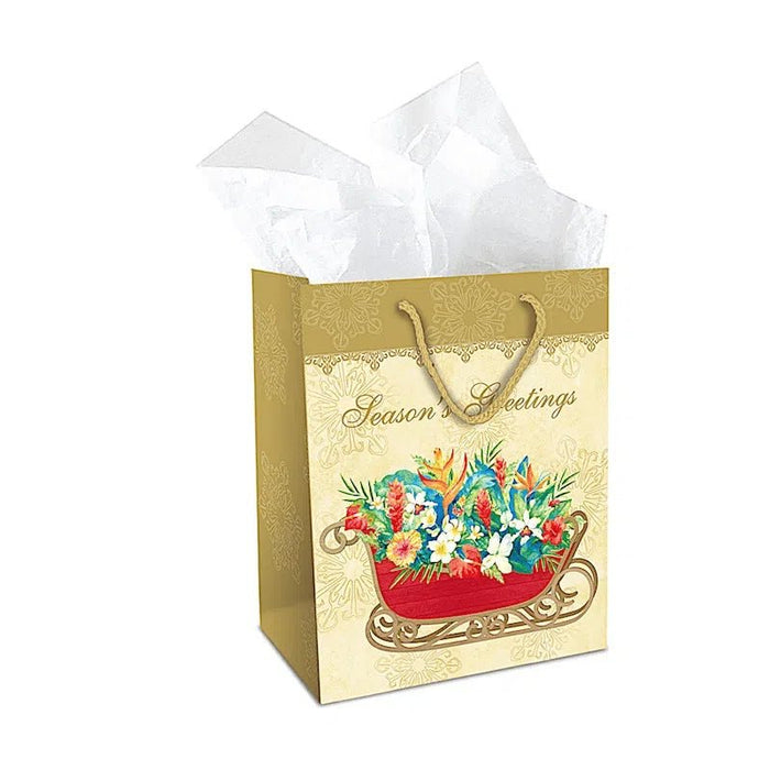 Add a touch of the islands to your gift giving this holiday season with our Holiday Gift Bags. These attractive bags are great for dressing up any holiday occasion. Personalize your gift bags with coordinating Gift Tags and Tissue Paper. Measures 8" x 10" x 5"