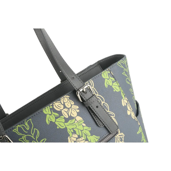 Our Elizabeth is the perfect tote for you if you’re looking for our beautiful prints in a purse. This tote bag features pockets to keep your smaller items organized while still offering space in the center for all of your larger belongings. This sophisticated Hawaii inspired Pakalana Grey tote gives you the feeling of security with the top-zip design created to make sure your essentials stay put.