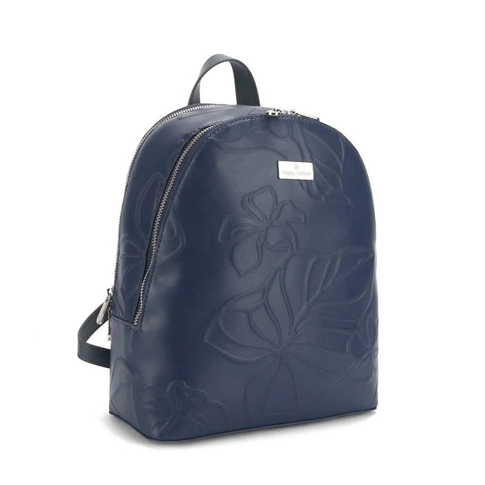 The Tiffany is your next go to backpack for work, school, and adventuring into the unknown. Walk the streets with our Tiffany backpack which is adorned in our exclusive Happy Wahine Kalo Embossed Navy print. Designed with functionality in mind, this backpack has two zippered compartments to keep your electronics and personal belongings separate for easy access.