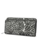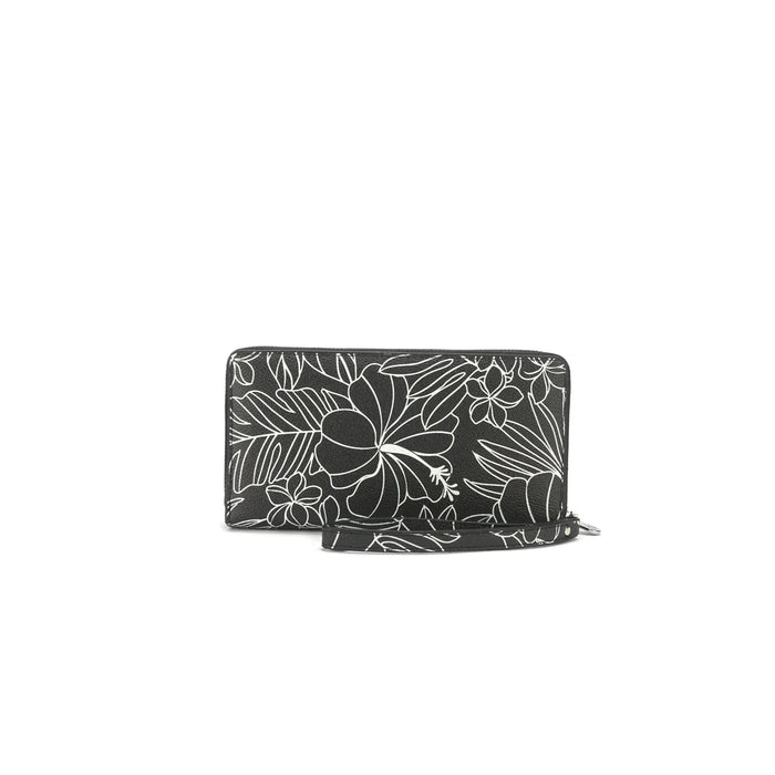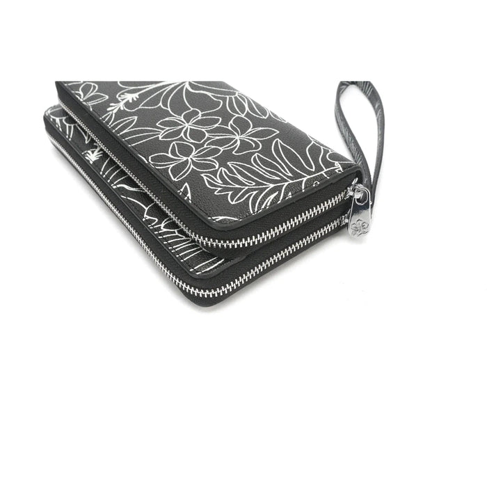 The Allison wallet offers a compact way to carry your essentials! This wallet will protect your credit and debit cards with RFID protection. The wallet has 14 credit card slots, 1 zipped coin compartment, and 3 separated inside pockets large enough to fit all types of currency. We also have a zippered front pocket to hold your phone or similar items and it features a stylish wristlet strap as well! The exclusive Hibiscus Lines pattern in a sleek black offers a perfect addition to your purse or outfit!