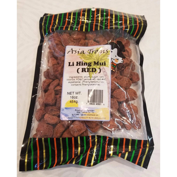 Enjoy the flavor of Li Hing Mui (plum) in these dried preserved fruits, a local Hawaiian favorite. Brought to Hawaii many years ago by Oriental immigrants, these snacks follow a time-honored tradition of drying and preserving. Bite into one of these strips and savor a burst of flavor. Great as a snack while traveling, in between classes or meeting or at parties. Packed by Asia Trans & Co. on the Big Island of Hawaii, USA.