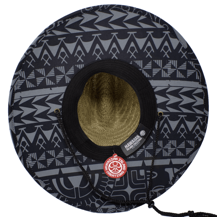 Features Shaka symbol with the words aloha and the Hawaiian Islands inside.  Has a beautiful and comfortable cloth tribal pattern underside.  Perfect for long days outside in comfort.