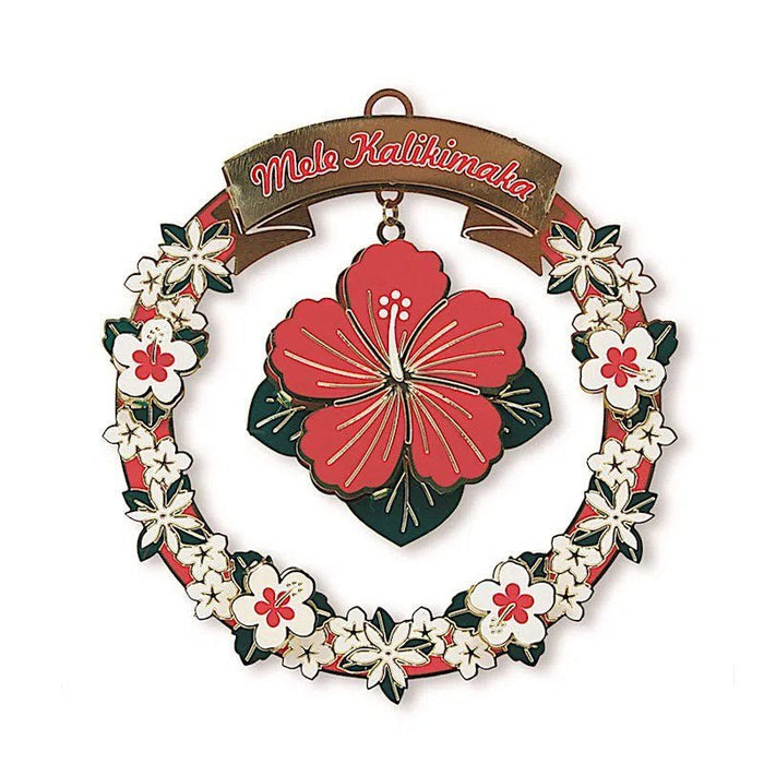 Send friends and family a keepsake, colorful, metal die-cut Tropical Wreath Collectible Ornaments. This beautiful ornament has a three-dimensional effect with two layers of metal, one raised above the other. Select ornaments feature an attractive icon that moves gracefully in the center. A hanging ribbon is included with measurement approximately 3 ¼” diameters.