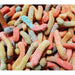 Sour bright gummy worms (Crawlers) dusted in li hing powder.