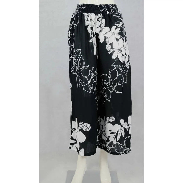 Plumeria Lei Haleiwa Wide Leg Pants - Black and White