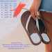 We utilized the same material on the insole and heel patch as the strap bringing together a very clean looking slipper. The heel patch extends the life of the slipper by giving an extra later where it is needed most.