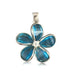 Sterling Silver 18MM Hawaiian Plumeria with Lab-Created Semi-Precious Blue Topaz Pendant. 3/4" in diameter with Blue Topaz on the petals of the Plumeria Flower.