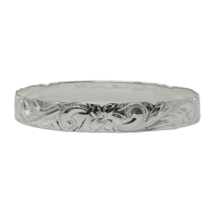 Sterling Silver Raised “Aloha” Cut-Out Edge Bangle 10mm