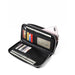 The Allison wallet offers a 2-in-1 feature like no other! This wallet will protect your credit and debit cards with fancy RFID protection. The wallet has 14 credit card slots, 1 zipped coin compartment, and 3 separated inside pockets large enough to fit all types of currency. But that's not all, we also have a zippered front pocket to hold your phone or like items. Bonus, this wallet features our wristlet strap as well!
